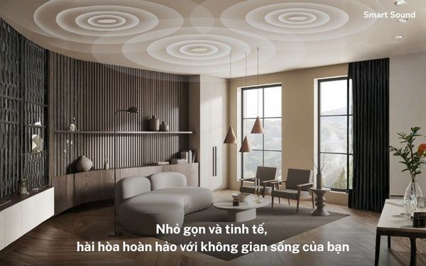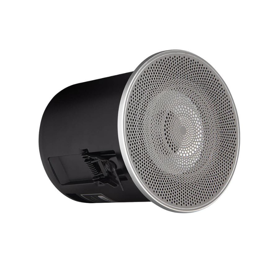 Khi được lắp đặt, loa gần như "biến mất" vào trần nhà, chỉ để lại mặt lưới phẳng tinh tế, giúp duy trì tính thẩm mỹ của không gian trong khi vẫn mang đến âm thanh chất lượng cao.