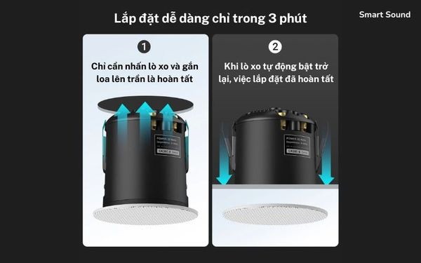 Hệ thống kẹp lò xo tự động sẽ siết chặt loa vào vị trí, đảm bảo lắp đặt chắc chắn mà không cần các công cụ đặc biệt. Việc lắp đặt đơn giản này phù hợp với cả gia chủ tự làm hoặc thợ chuyên nghiệp.